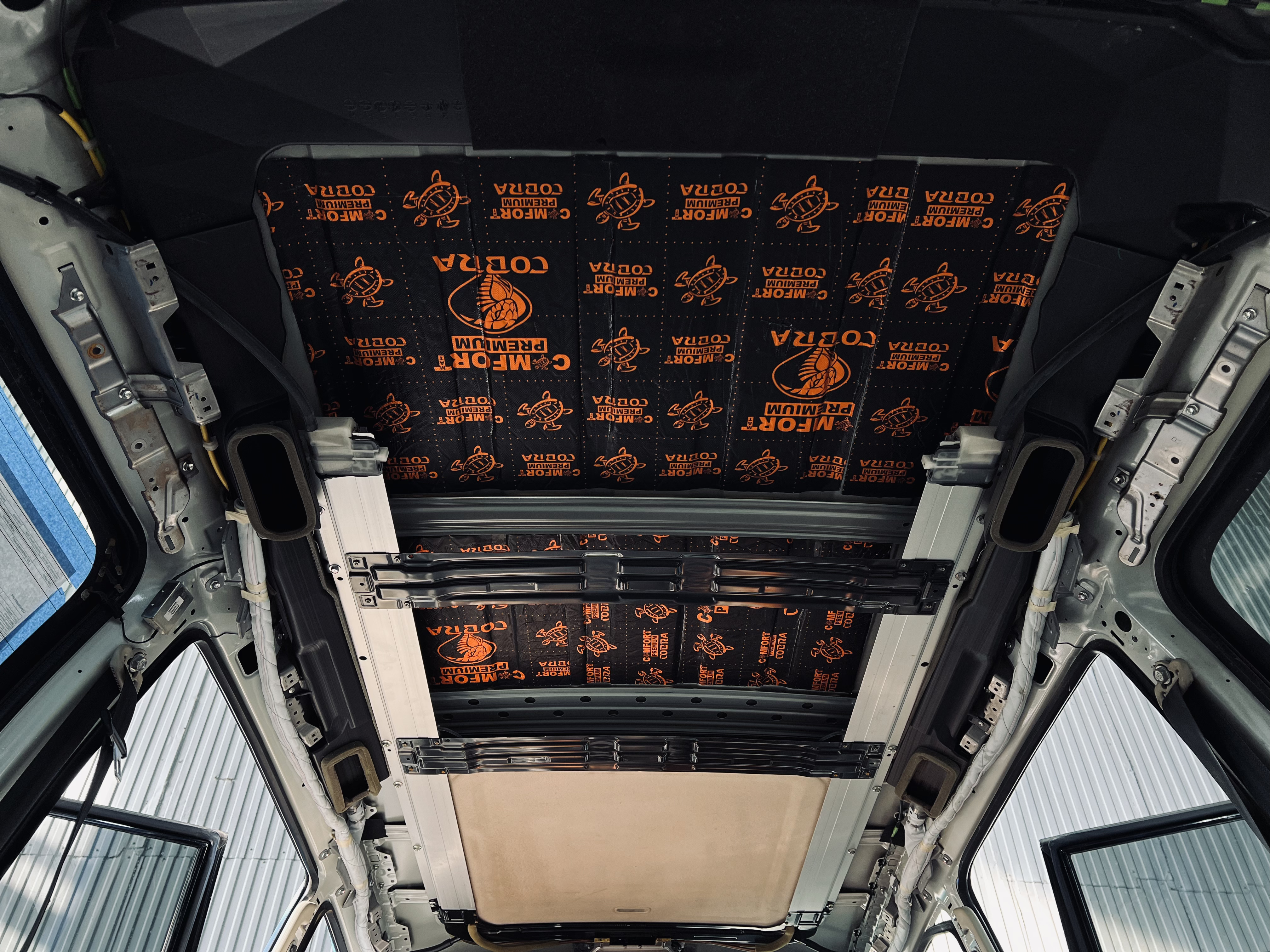 Крыша автомобиля часто пропускает шум ветра и дождя. Мы обработали ее в два слоя, чтобы обеспечить тишину в салоне даже в непогоду.
