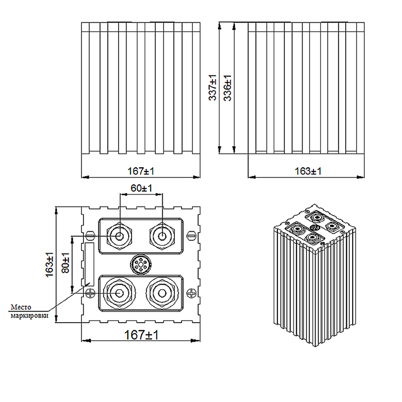 Аккумулятор LiFePO4 380Ah Литий-железо-фосфат (секция 4 банки)