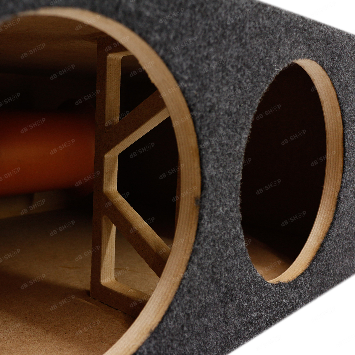 Акустический короб для сабвуфера на трубе рассчитан на два динамика диаметром 8" и способен выдавать мягкое, глубокое, и одновременно очень мощное звучание. Качественная обшивка в карпет отлично впишется в интерьер вашей машины, а точно рассчитанная конструкция обеспечит качественный звук даже при небольших габаритах. Компактный размер позволяет удобно разместить ящик в багажнике даже небольшого автомобиля, выжав максимум из ограниченного объема.